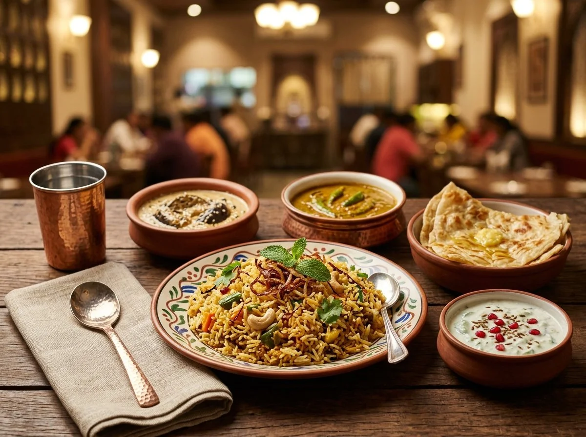 Hyderabadi Biryani, Hyderabadi Haleem, Lukhmi, Mutton Marag, Shikampuri Kebab, Dum Ka Murgh
